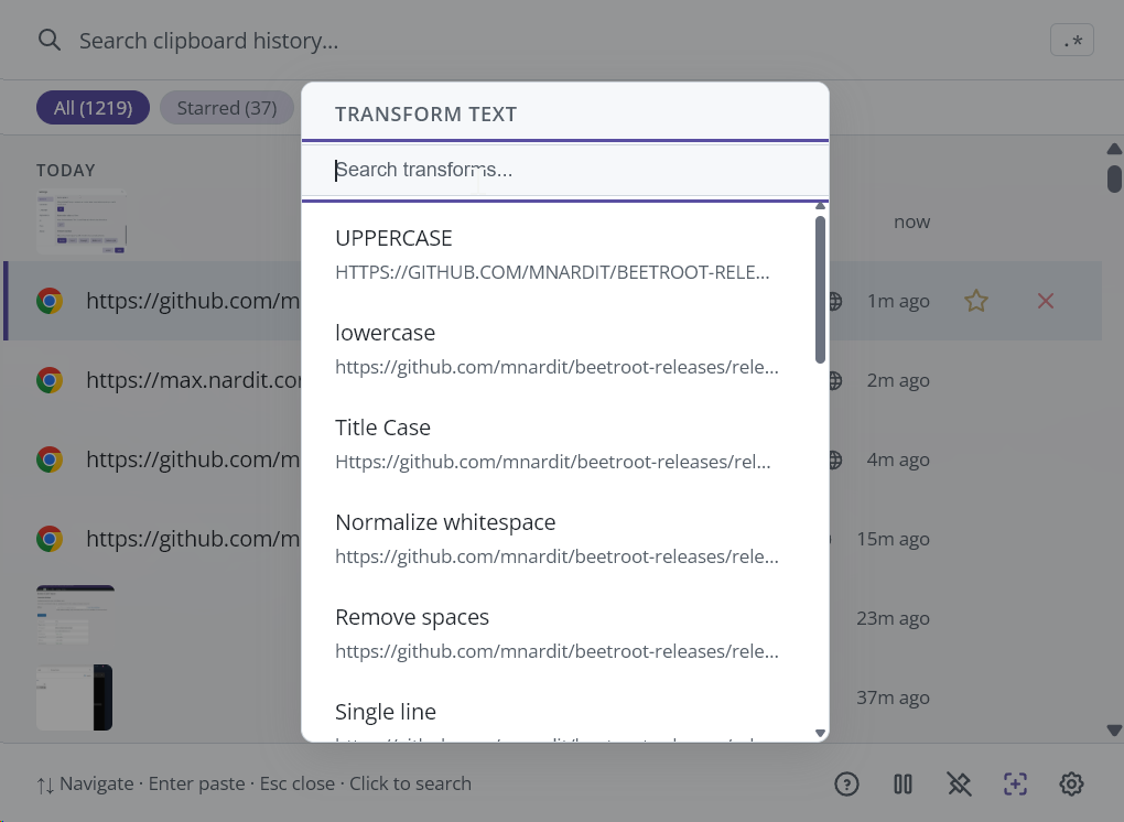Beetroot's search engine moved to Rust — accent folding, typo tolerance, prefix matching. Plus a no-focus window that doesn't interrupt your workflow.